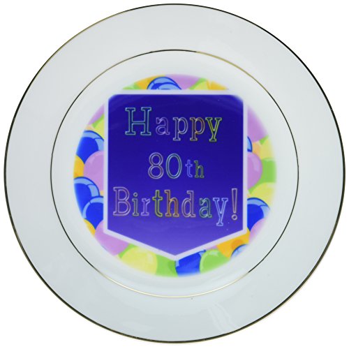 3dRose cp_173073_1 Balloons with Purple Banner Happy 80Th Birthday-Porcelain Plate, 8-Inch