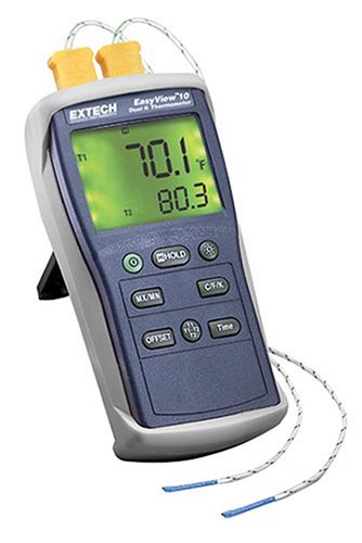 Extech EA10 EasyView -200 Degrees to 1999 Degrees Farenheit and -200 Degree to 1360 Degree Celsius Dual Input Thermometer with 2 Type K Probes
