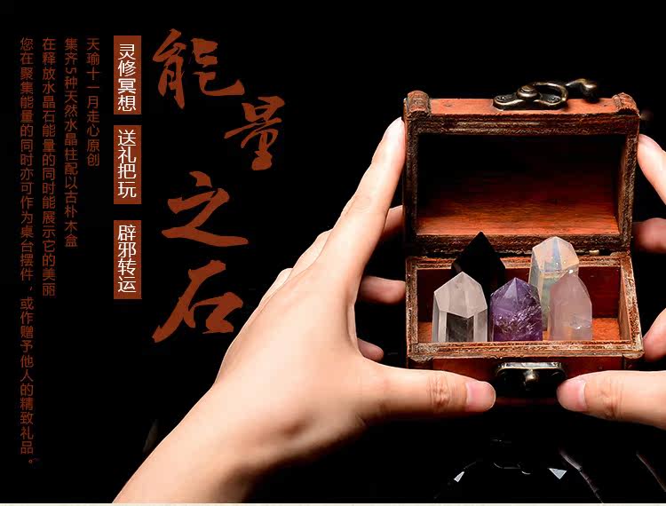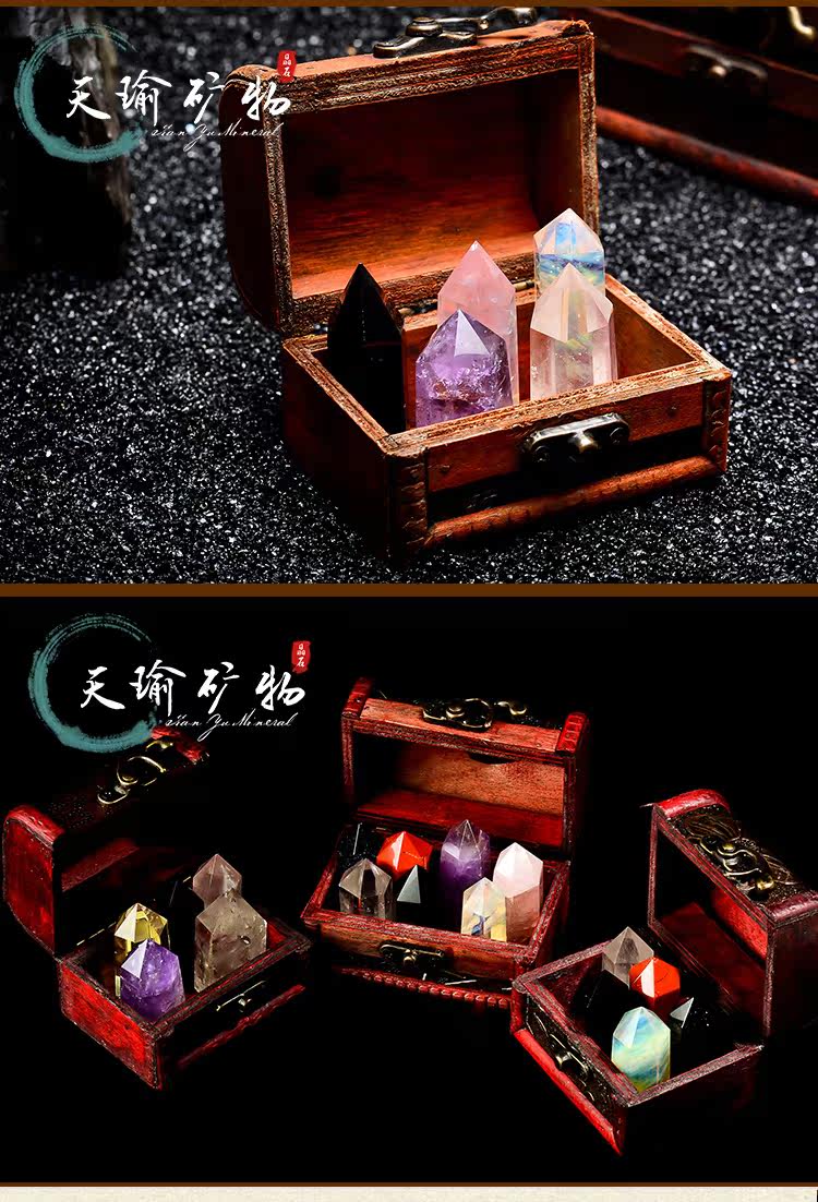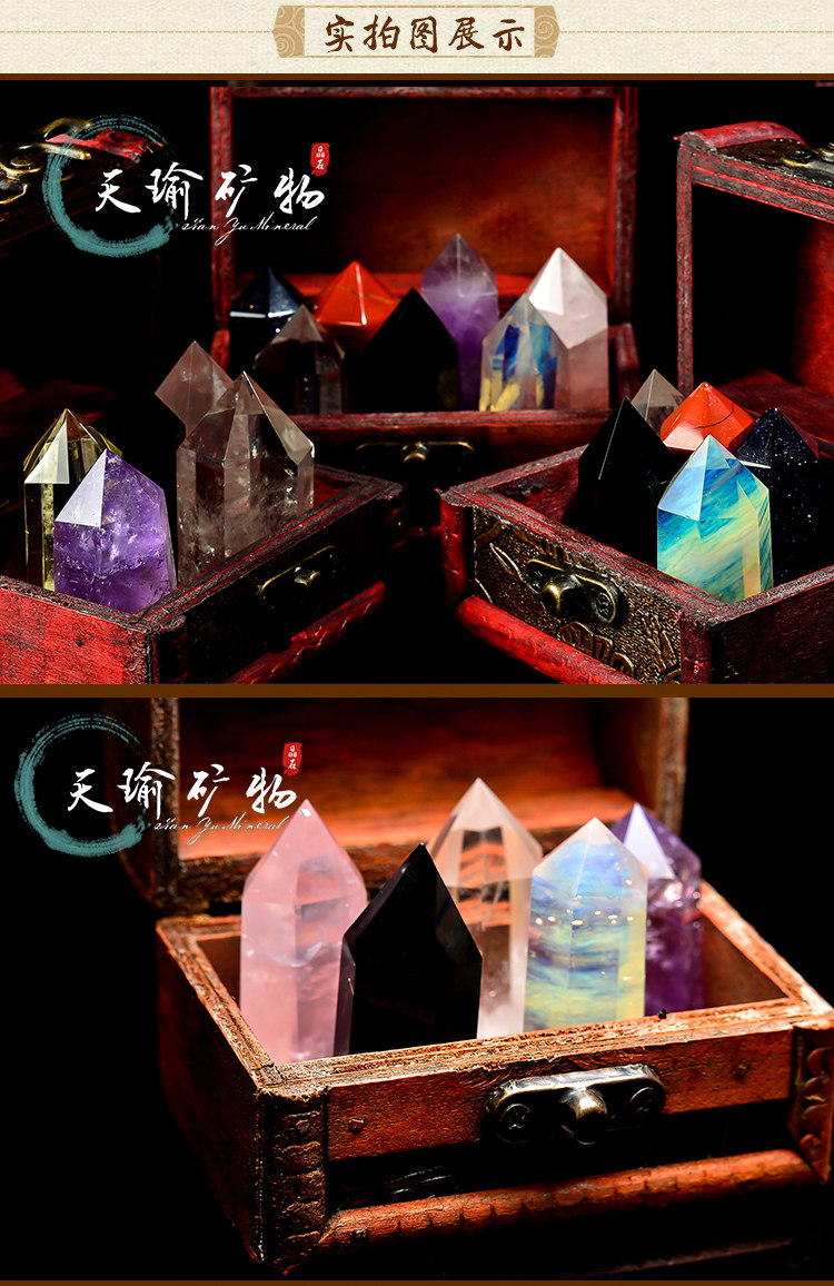 天然水晶原石摆件创意五色水晶柱矿石宝盒熔炼黄水晶黑曜石原矿石