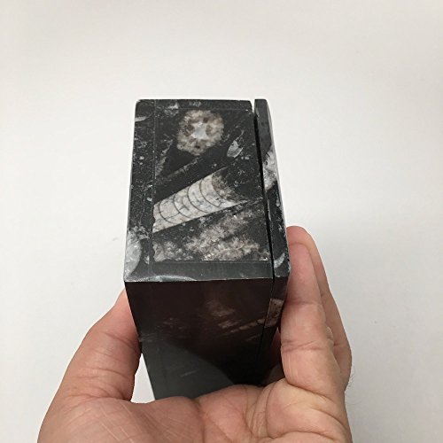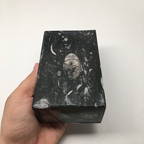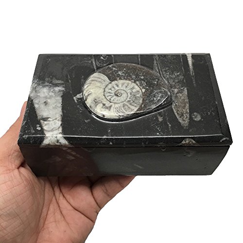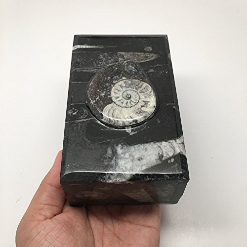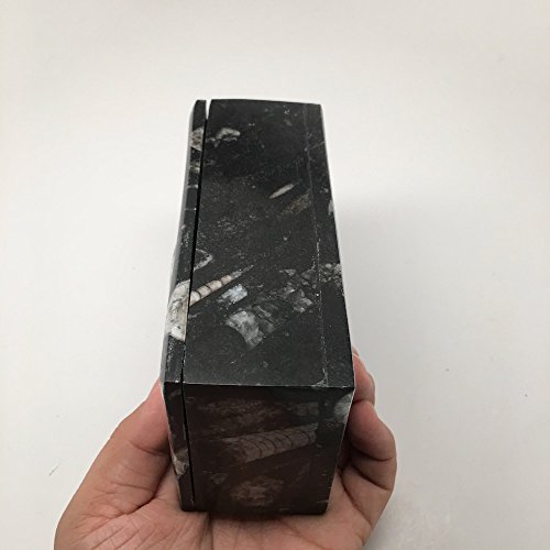 606 Grams, 5" x 3" x 2" Rectangle Shape Orthoceras Handmade Brown Jewelry Box from Morocco, MF749