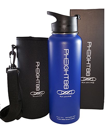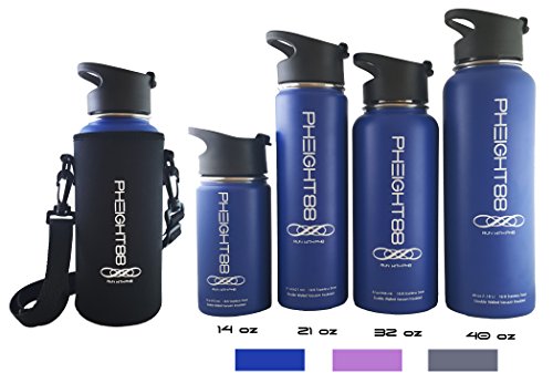 Stainless Steel Water Bottle with Black Case Holder by Pheight88 | Vacuum Insulated Double Walled, BPA-Free + Run with Ph8 (fate)+ 14 oz, 21 oz, 32 oz, 40 oz