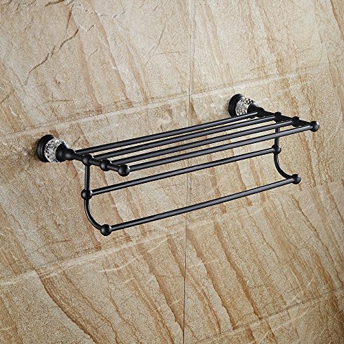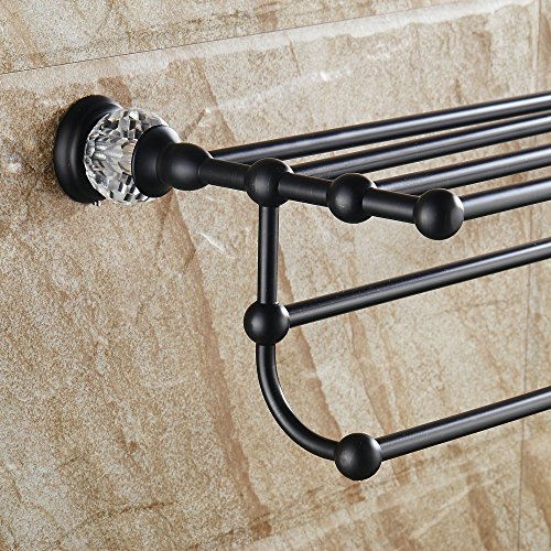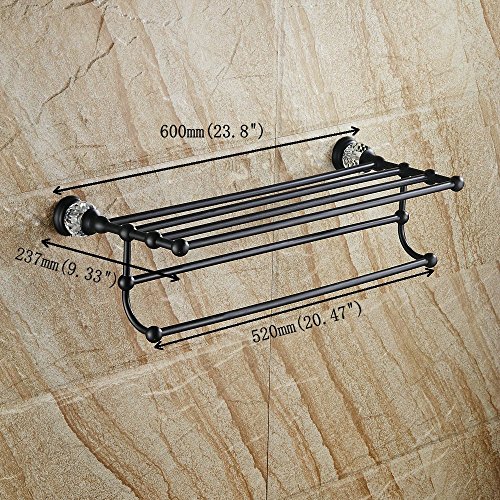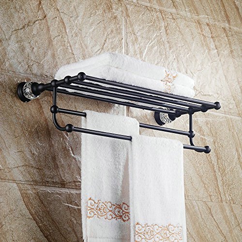Hiendure Contemporary Wall Mount Brass Bath Towel Rack Hotel Bathroom Shelf with Double Towel Bar 60 CM Storage Organizer, Oil Rubbed Bronze