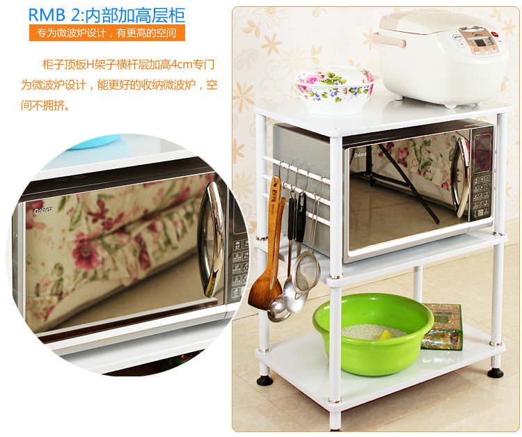 ●简便的立体结构, 上层,中层空间是微波炉、电烤箱等大件电器的位置; ●下层柜子可以放碗叠等小件物品; ●有它帮助你轻松归纳, 各种电器杂物立刻井井有条, 厨房变得整洁有序、明快清新。 ●底部四个万向轮,还带刹车。板面采用贴面,贴面之上烤漆处理美观靓丽 |