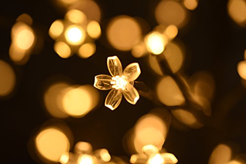 6FT 208 LED lighted cherry blossom tree, brown branch, clear flower, warm white LED lights, 20 Ft lead wires.