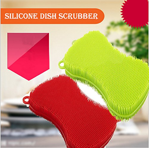 Wooopa Multipurpose Silicone Dish Scrubber Sponge Brush for Dish Washing Multi-functional Cleaning Fruit Washer / Vegetable Cleaner / Heat-resistant Mat / Gloves [Pack of 2]