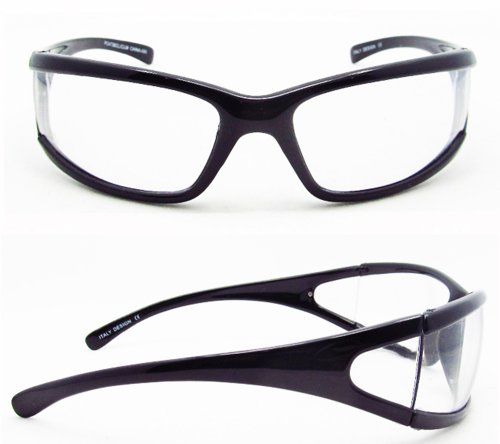 -. Title : Clear Lens Sunglasses with Side Shield. Impact Resistant Polycarbonate Lenses. Free Mirofiber Cleaning Case Included.