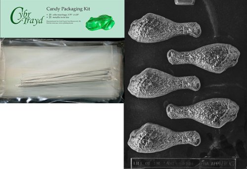 Cybrtrayd Drumstick Miscellaneous Chocolate Candy Mold with Packaging Bundle of 25 Cello Bags, 25 Silver Twist Ties and Chocolate Molding Instructions