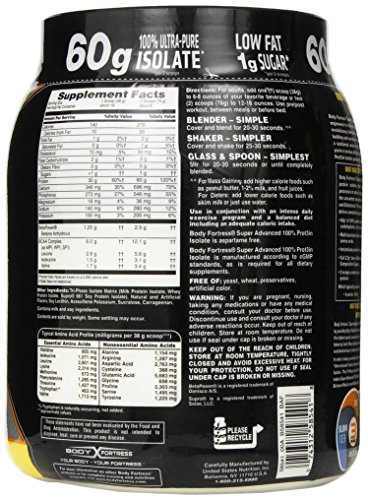 -. Binding : Health and Beauty -. Brand : Body Fortress -. Label : Body Fortress -. Manufacturer : Body Fortress -. ProductGroup : Health and Beauty -. ProductTypeName : HEALTH_PERSONAL_CARE -. Publisher : Body Fortress -. Studio : Body Fortress -. Title : Body Fortress 100% Isolate Protein
