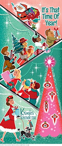 Retro Christmas Shoppers Christmas Cards feature an illustrated scene of a vintage department store.
