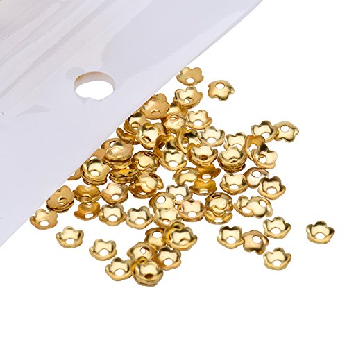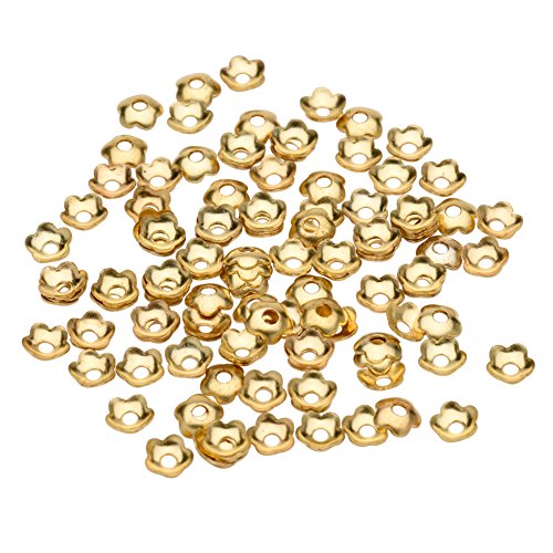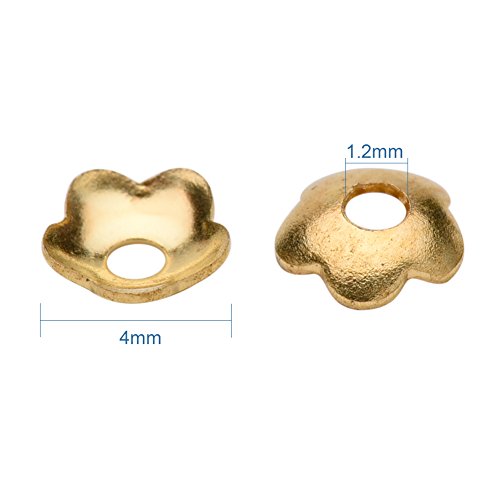 PandaHall Elite Jewelry Making Metal Brass Bead Caps 5 Petal Flower Cup Shape Beads Diameter 4mm Golden a Bag