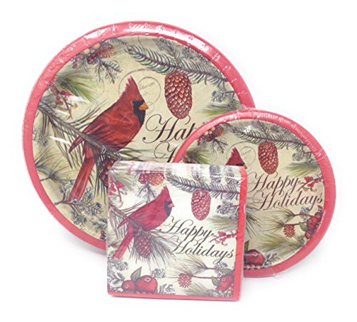 Holiday Cardinal Christmas Party Plates and Napkins - Happy Holidays