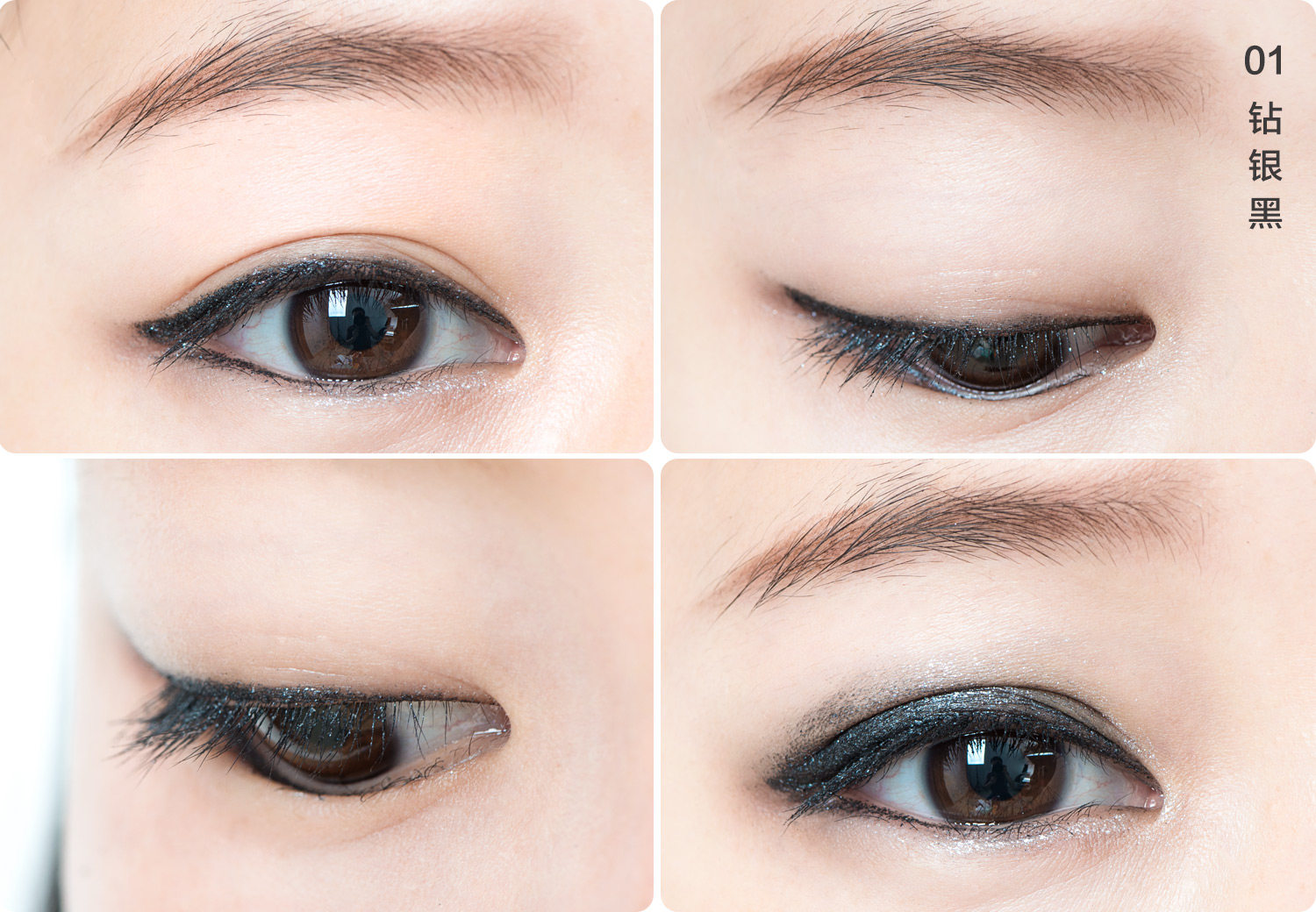 01号 钻银黑:最基础实用的颜色,适合任何场合使用,有放大眼睛的效果,让眼部轮廓更加清晰明朗。