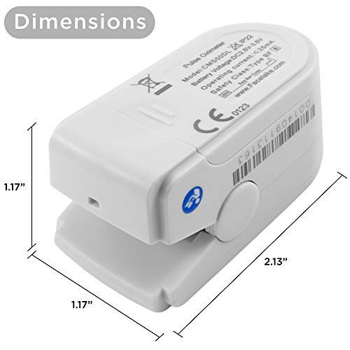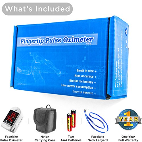 -. Feature : INDIVIDUALLY TESTED FOR ACCURACY: Each device undergoes rigorous testing and is approved for use by the FDA. / QUICK READINGS: Incredibly easy to use. Simply turn on the device, place your finger within it, and have your pulse rate and SpO2 instantly displayed. / OUT-OF-BOX READY: Includes two Free AAA batteries, convenient carry case, useful lanyard and illustrated instruction manual. / ONE-YEAR WARRANTY: We stand behind our products with excellent customer service and an industry leading one-year guarantee. / You Get: the Fingertip Pulse Oximeter, Carrying Case, Neck/Wrist Cord, User Manual, 2-AAA Batteries, Plus our no-hassle 30-Day Full Money Back Guarantee and our One-Year 100% Full Manufactures Warranty managed by our friendly customer service care center in the US.