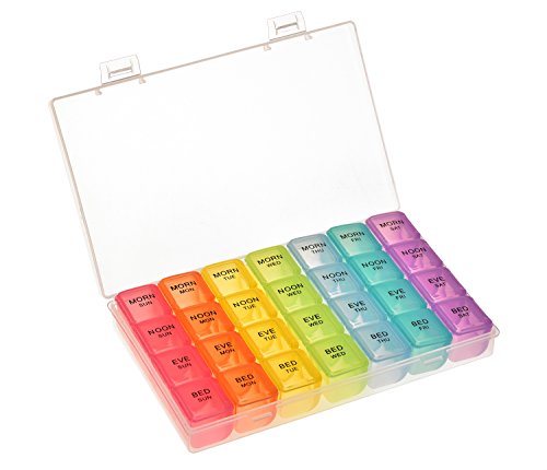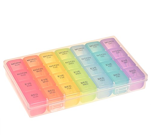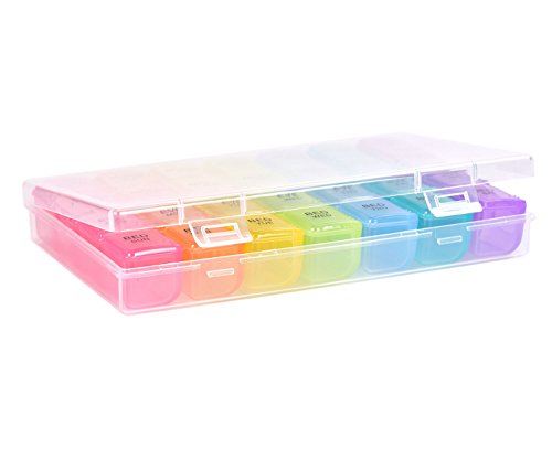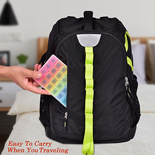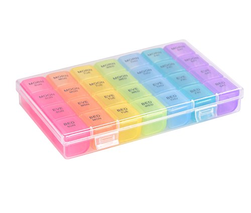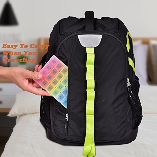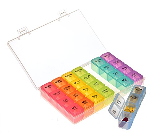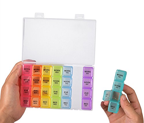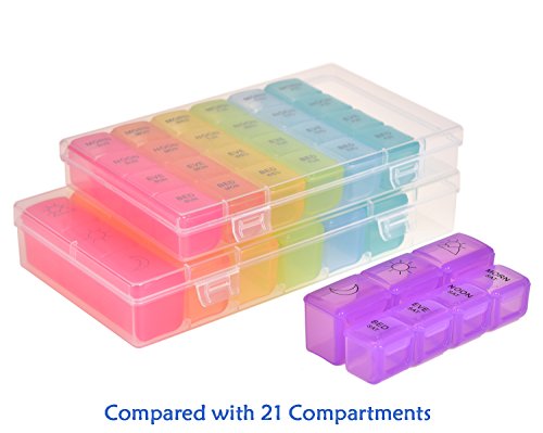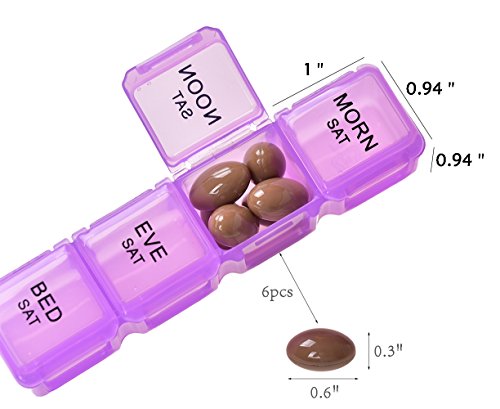 √ This optimum sized reminder pillbox helps organizing your daily medications for the whole week into morning evening slots. This is especially useful while traveling.