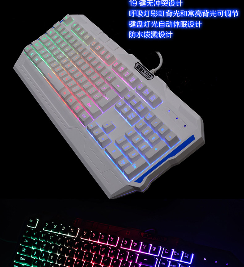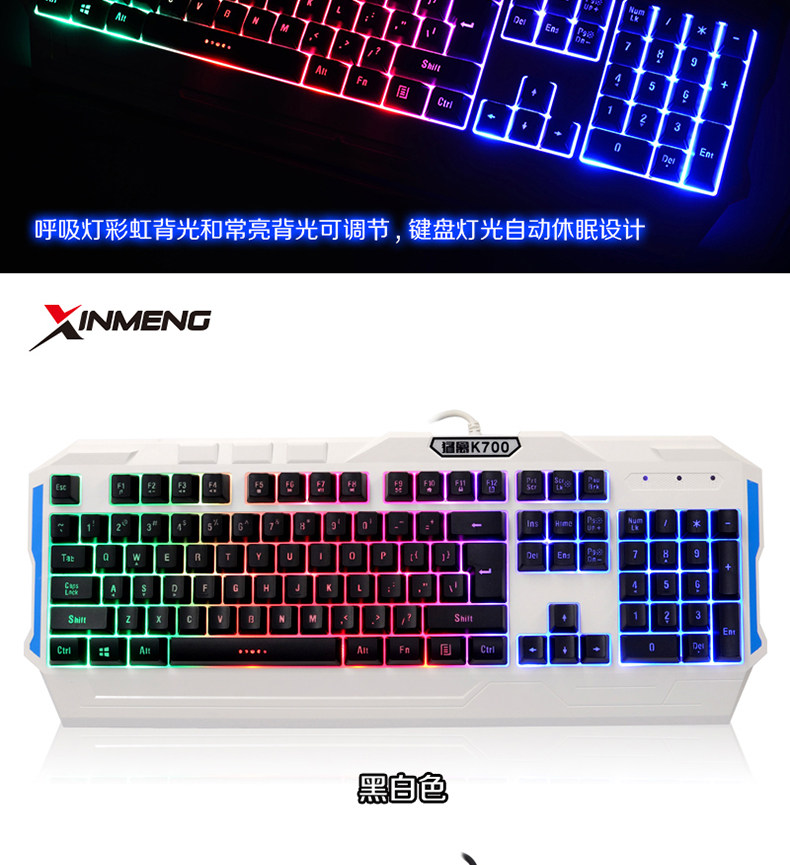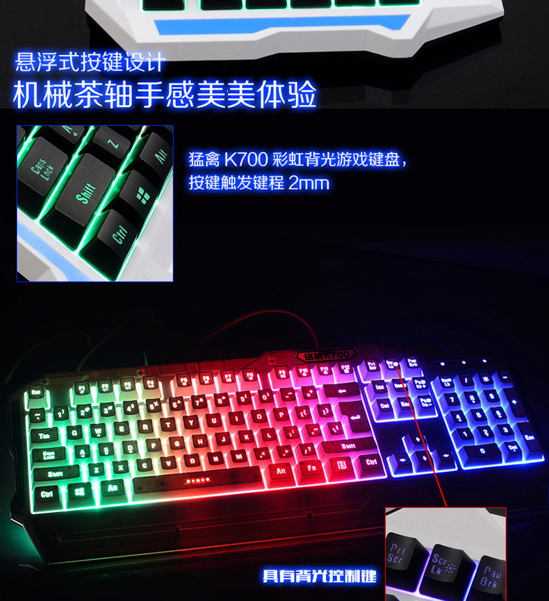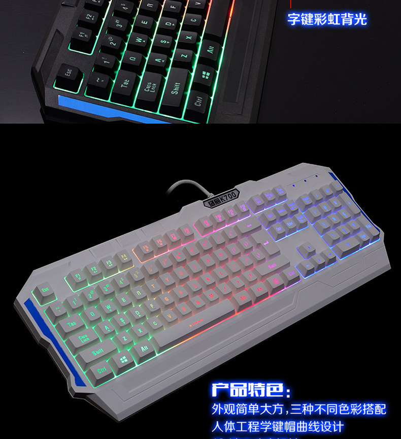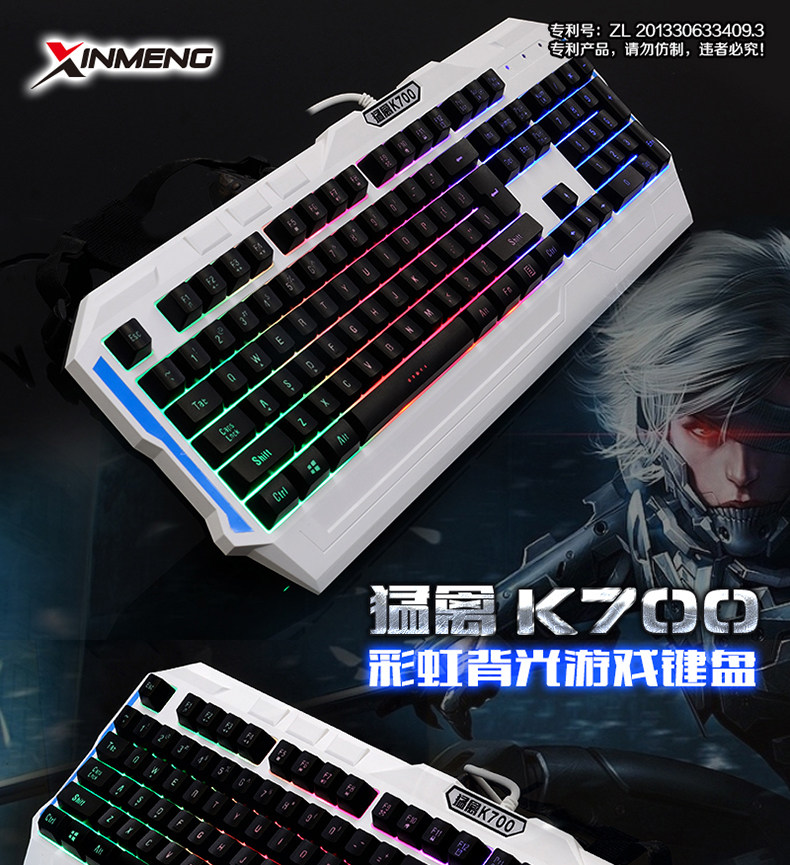 新盟K700 背光键盘 机械手感键盘 USB笔记本电脑 有线游戏键盘LOL