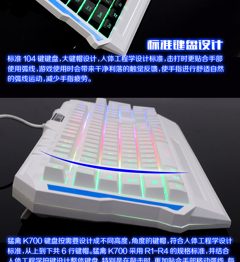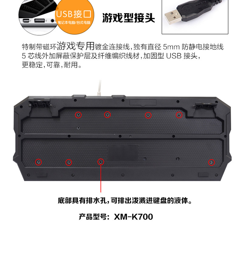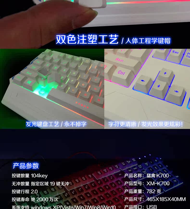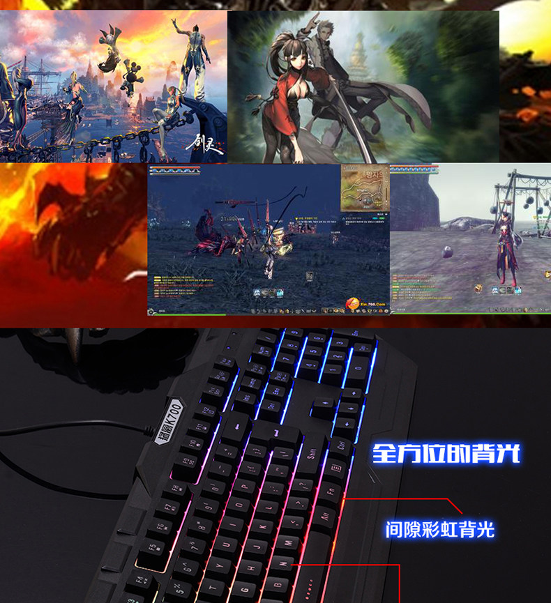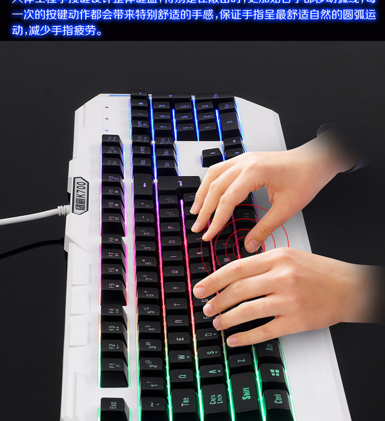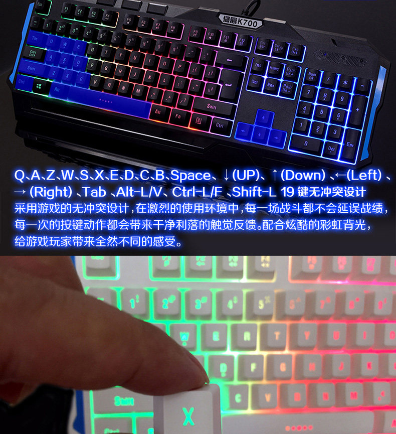新盟K700 背光键盘 机械手感键盘 USB笔记本电脑 有线游戏键盘LOL