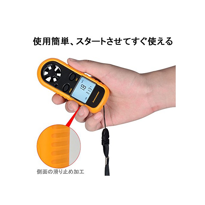 사용 간단,풍속계를 스타트 하게 해 곧 쓸만한다.단지 두 개의 버튼,한쪽 손 조작 가능.실리콘 커버와 스트랩 부착,손에 제대로 수습된다.리튬 전지(CR2032)한 장 부착,별도 구입 하는 필요는 없습니다.