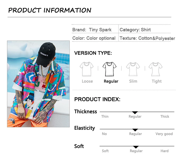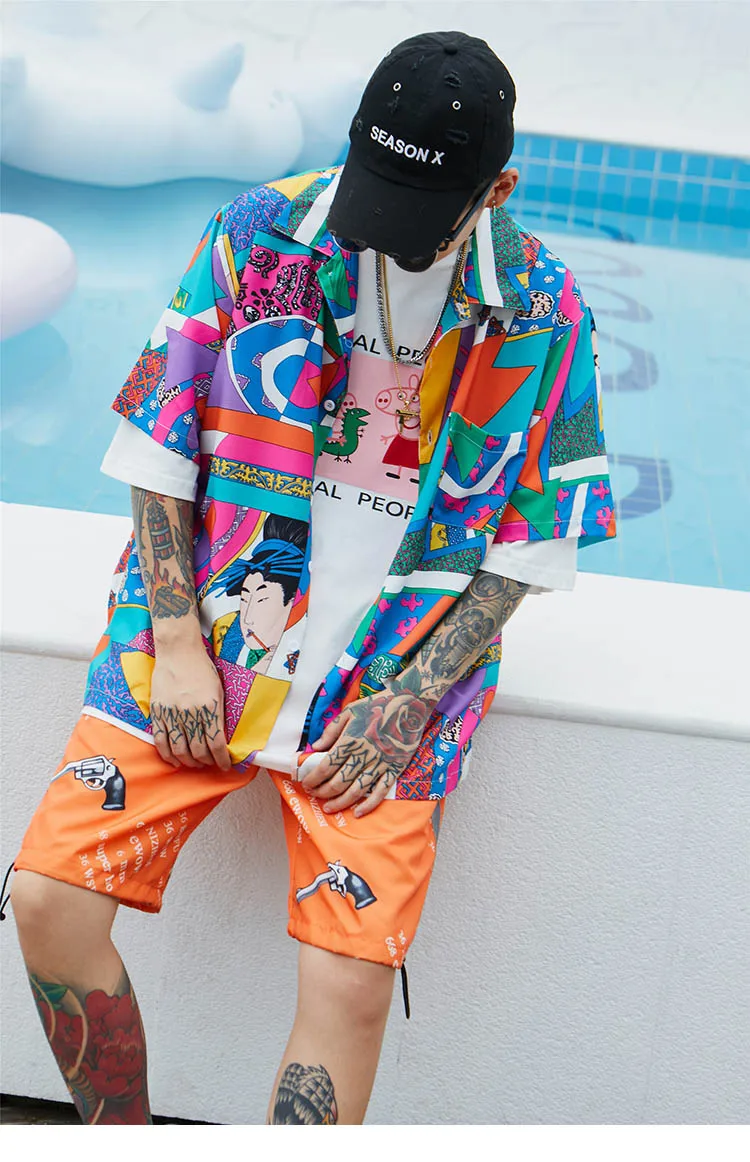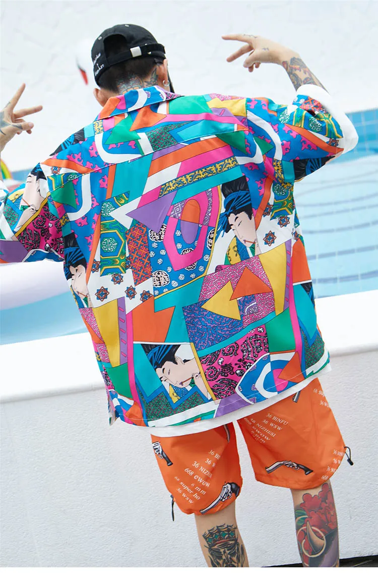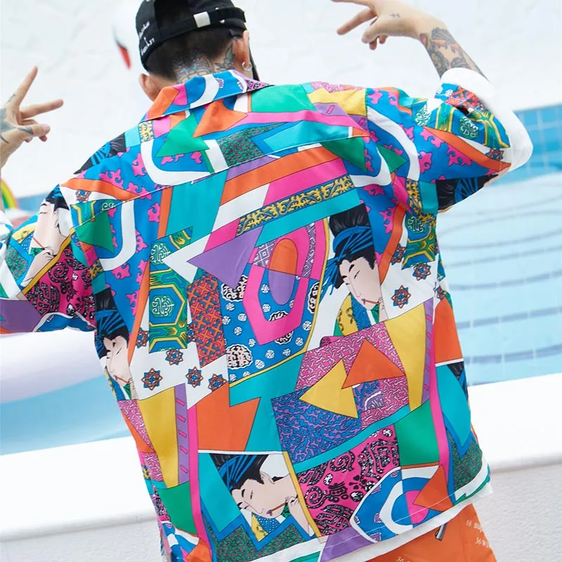 Item:Men Loose Hip Hop Shirt Harajuku Japanese Ukiyo E Anime Shirt