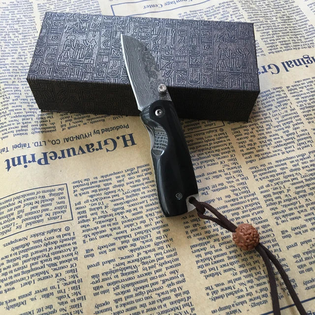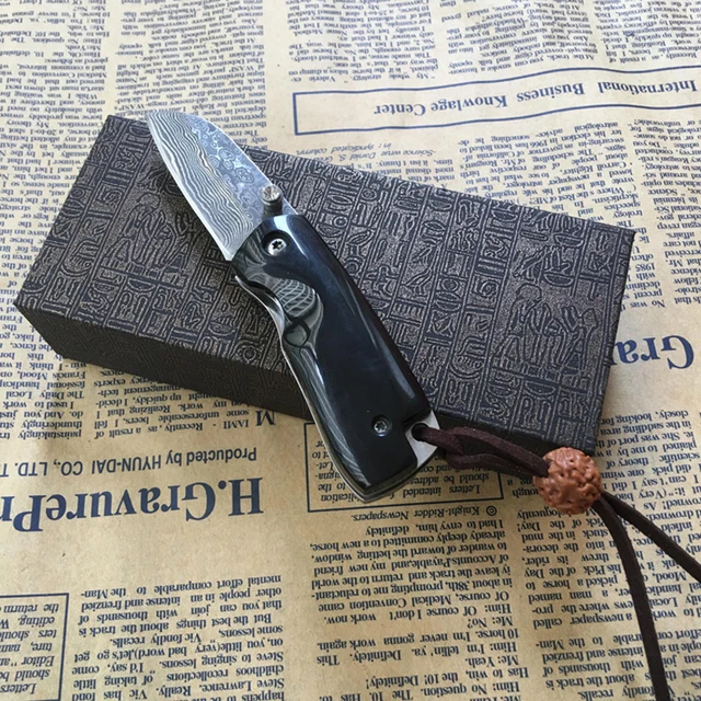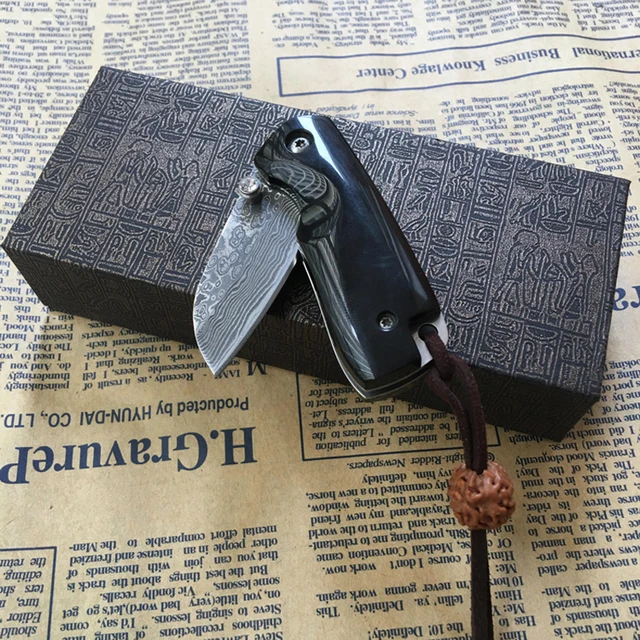 | [해외] Shootey 정의 다마스커스 전술 접는 나이프, 컬렉션 미니 폴더 칼, 생존 포켓 나이프 도구, 야외 캠핑 나이프 |