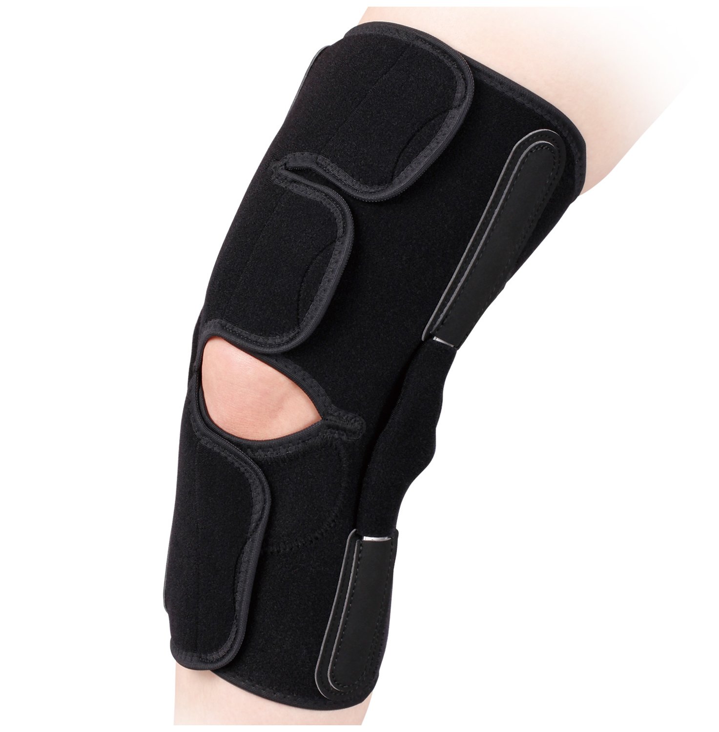 Aluminum stay of offset joint structure suppresses lateral swaying and overstretching of the knee joint.