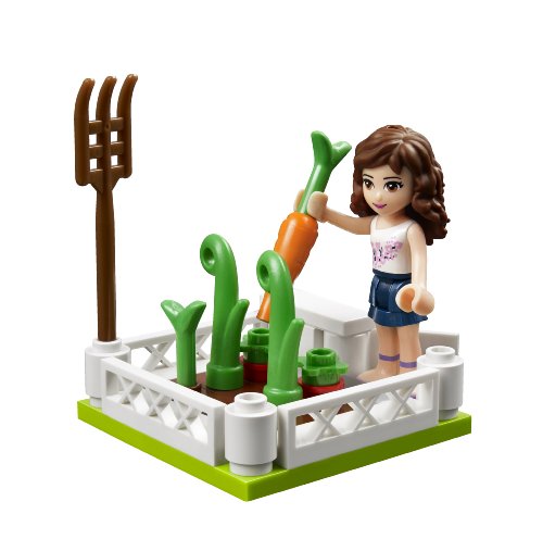 Take in the sunshine harvest with olivia! pick the apples from the tree and, with the carrots from the garden, drive to her market stall. use the trailer and hitch it to the tractor. when she gets there, put all the items on display. remember to pat charlie, the cute little dog who comes rushing out of the dog house to greet the customers. includes olivia mini-doll figure and her dog, charlie.Feature