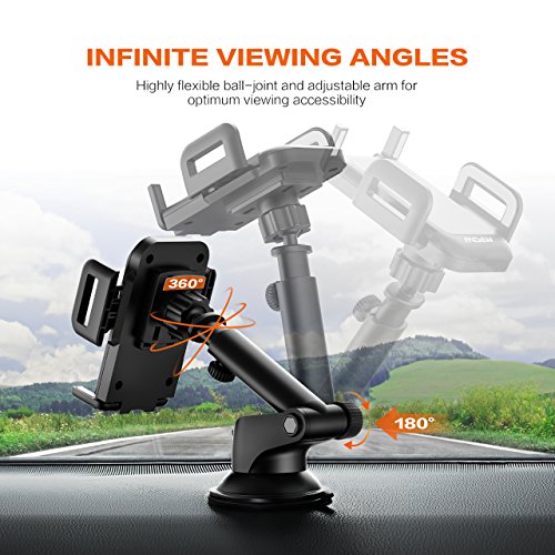 The car mount holder can be adjusted to the perfect viewing angle with its 360° flexible ball head. Telescopic arm offers great extension for ideal height and accessibility.
