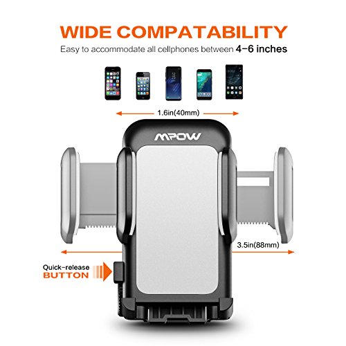 4.6-6.6in (11.8-16.8cm) arm width range to adjust. Compatible with most cell phones up to 6 inches including iPhone, Sony, Google, LG, HTC, Blackberry, etc.