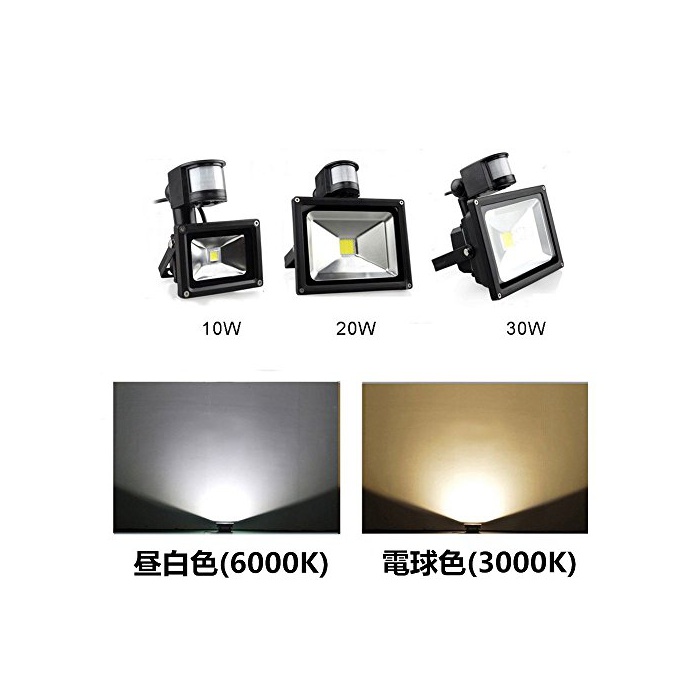원본상품명: led投光器 センサライト 10W 20W 30W LEDライト 6000K 3000k 白色 電球色 玄 照明 省エネ 長命 防水 防犯 防災用作業 屋外
