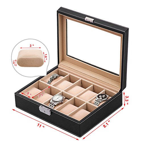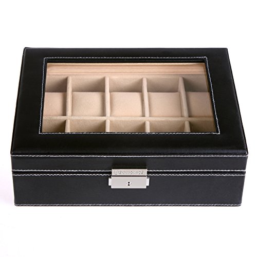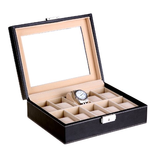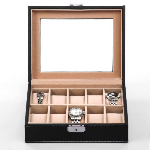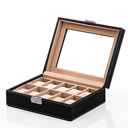 - Title : Songmics 5 Mens Watch Box Black Leather Watch Case Glass Top Watch Display Organizer UJWB001
