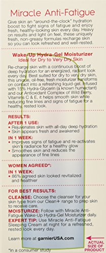 Just a little goes a long way! Re-charge skin with a continuous boost of hydration for an energized, radiant look every day. Best suited for dry to very dry skin, this unique, oil-free, fresh face moisturizer transforms on contact into a refreshing liquid-gel. SkinActive Miracle Anti-Fatigue Wake-Up Hydra-Gel Moisturizer is infused with 15% Hydra-Glycerin (a known humectant), Hyaluronic Acid and our Antioxidant Complex of Wild Berry, Vitamins C & E, it helps smooth skin while reducing fines lines and signs of fatigue for a healthy, rested look. • Continuous deep hydration for refreshed, rested-looking skin • 15 percent Hydra-Glycerin and Wild Berry Antioxidant Complex • After 1 use, rejuvenates skin with all-day deep hydration • Oil-free face moisturizer Apply to face and neck after cleansing. Gently pump a pea size amount onto fingers and smooth on face and neck until fully absorbed. For best results, use twice daily.Feature