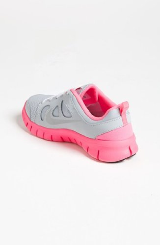-. Title : Free 5.0 (PS) Girls Youth Running Shoes Pr Platinum/ Bl Hr-Pnk Fl-White