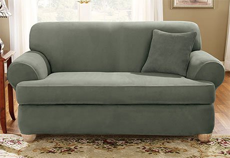 -. Binding : Kitchen -. Brand : Surefit -. IsAutographed : 0 -. Label : sure fit -. Manufacturer : sure fit -. ProductGroup : Home -. ProductTypeName : HOME -. Publisher : sure fit -. Studio : sure fit -. Title : Stretch Suede Separate Seat Sofa-T Slipcover Dark Green