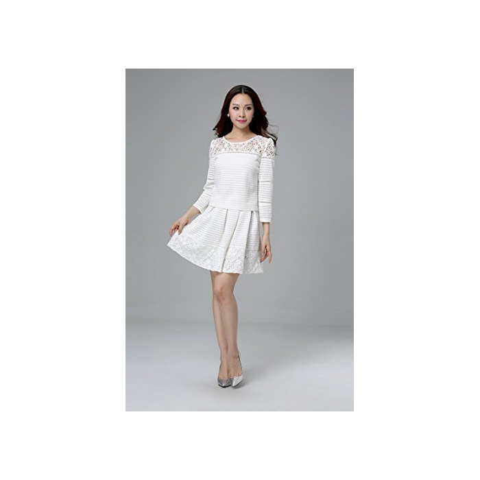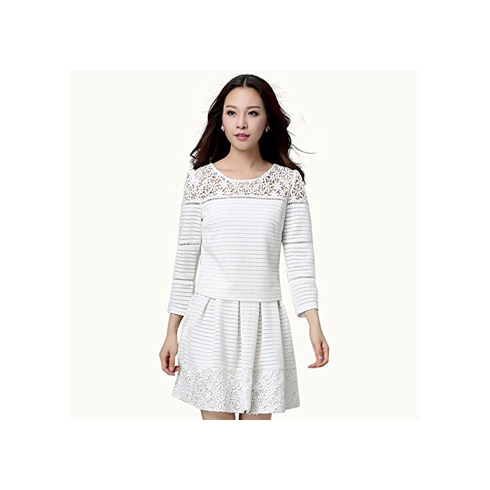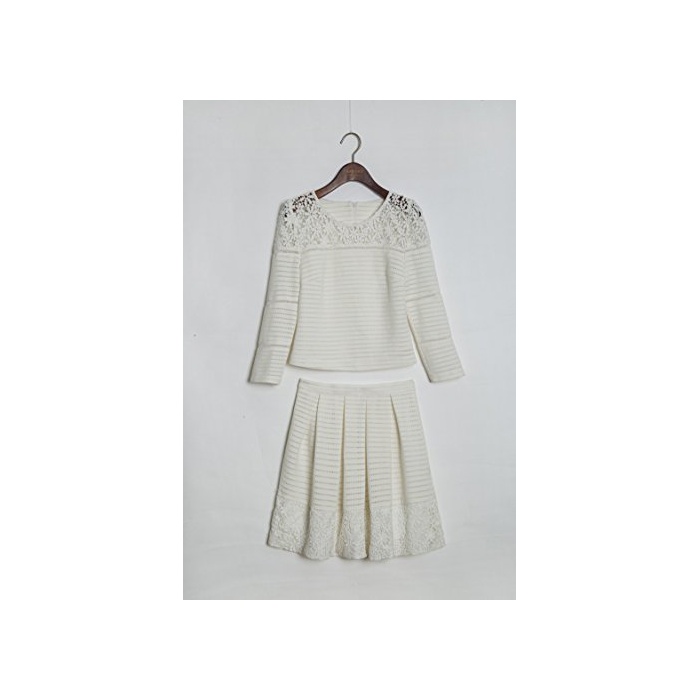 (amphi《니》) infini 7 분소매 레이스 교환 톱스+스커트 세트 화이트 LL 3L 4L 5L 큰 사이즈