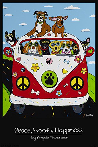 Peace Woof and Happiness by Angela Alexander 24x36 Art Print Poster Dog Lovers Humor Retro Pop Style VW Beetle