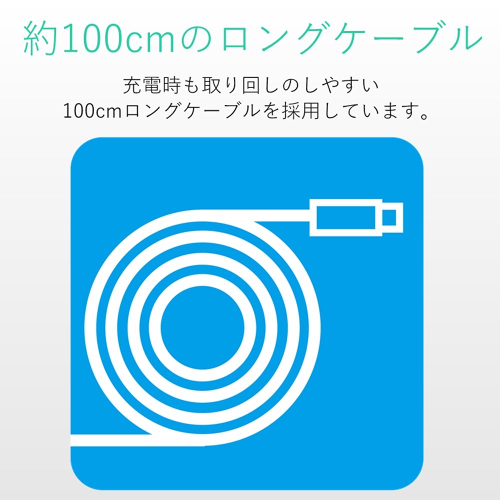 ■ It is an integrated cable type that can be used immediately, and it employs a long cable of about 100 cm that is easy to handle when charging.