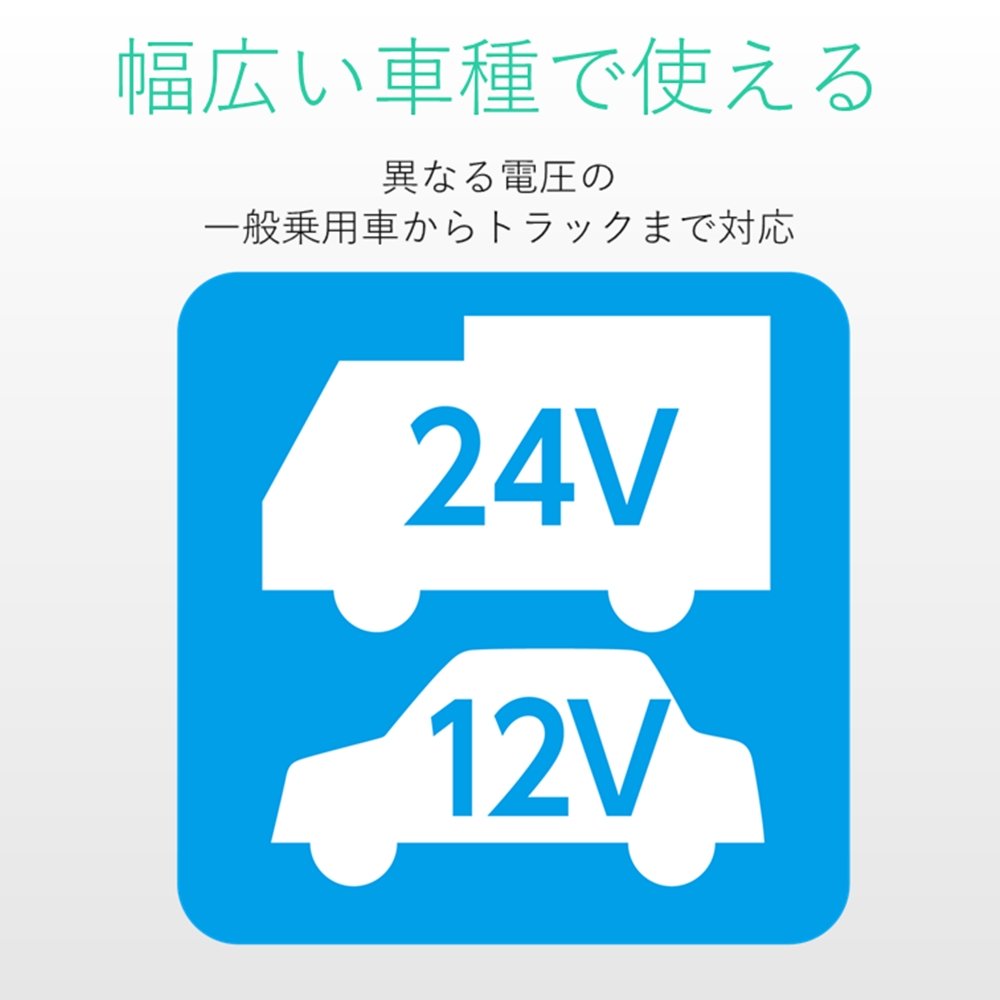 ■ It is compatible with 12V / 24V input which can be used for large vehicles such as trucks as well as ordinary cars.