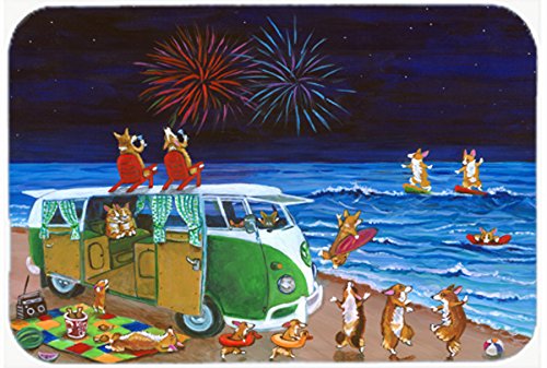 Caroline's Treasures 7317JCMT Corgi Beach Party Volkswagen Bus Fireworks Kitchen or Bath Mat, 24 by 36", Multicolor