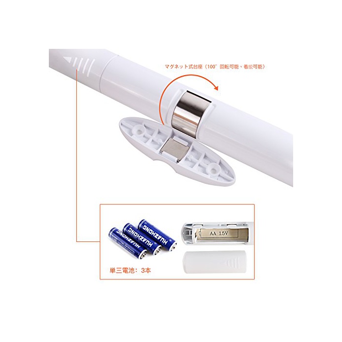 Unigear 센서 라이트 인감센서 LED 에너지 절약 초수명 180도 회전 붙이기형 마그넷 부착 단3부착 회중전등 클로젯 현관 화장실 계단【2점 세트】(주백색)