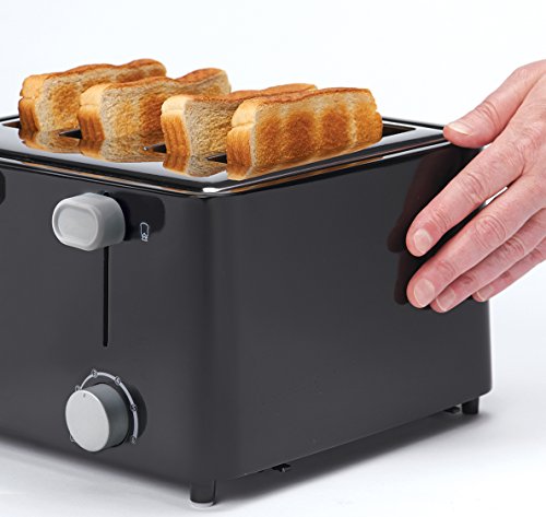 Feature : Convenient 4 slice capacity with centering guides in each of the extra-wide 30mm slots / Electronic variable toast shade control lets you adjust to just the way you like it / Cool-touch housing and toast cancel function are included for safety of operation / Extra-lift feature to allow for easy removal of smaller size breads and bagels / Pull down crumb tray is a great help when cleaning your unit