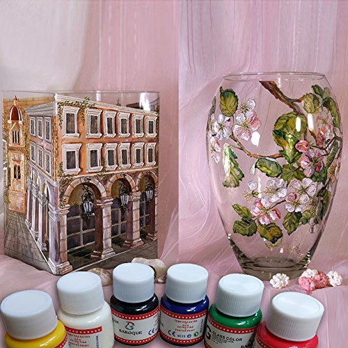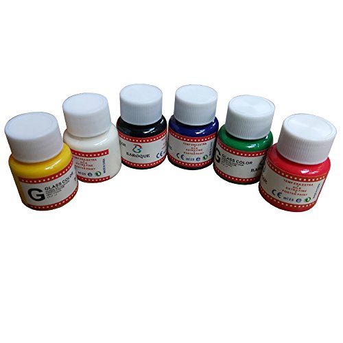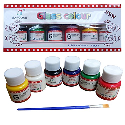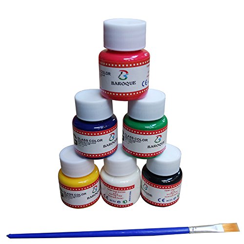 CONTEND - The glass paint kit includes 6 counts glass paint, 1 brush. Permanent, transparent colors with a glossy sheen, the colors are available in 25ml bottles “multi surface paint”
