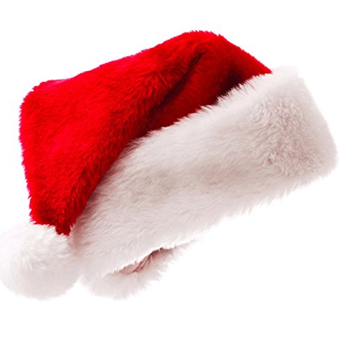 - [HIGH QUALITY]: You are looking for the most comfortable Santa Hat, right? Our Santa Hat is absolutely perfect. Made of high quality and soft plush, comfortable, non-toxic and sturdy enough to be used many times. Not easy to fade as well.