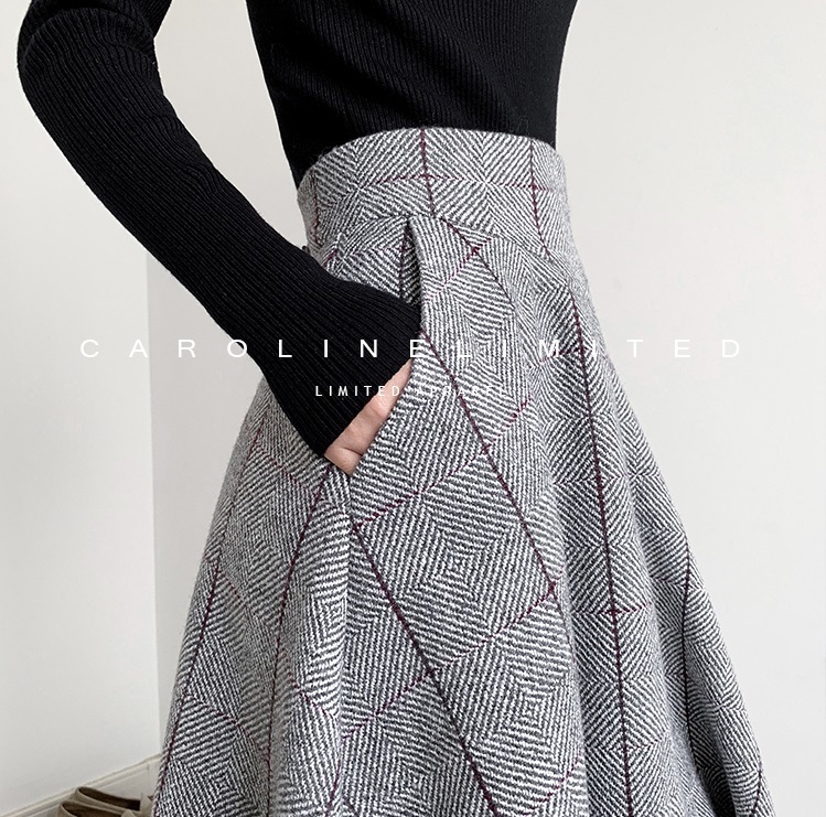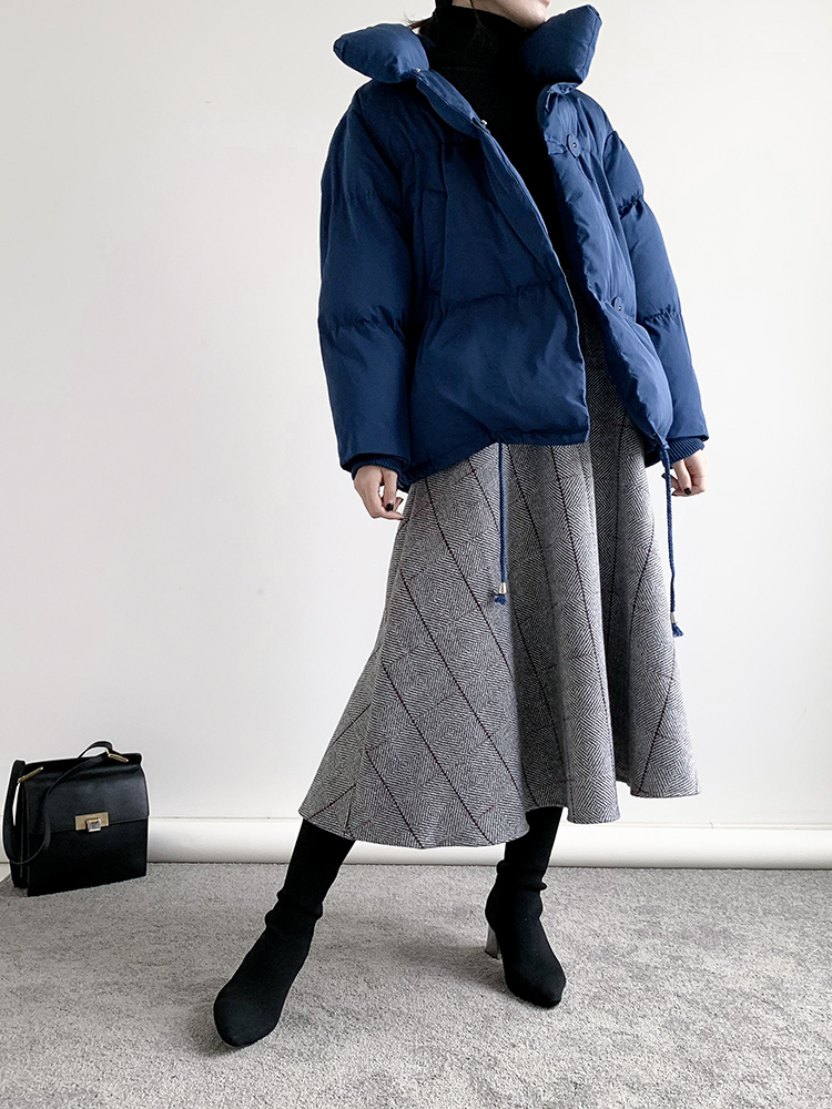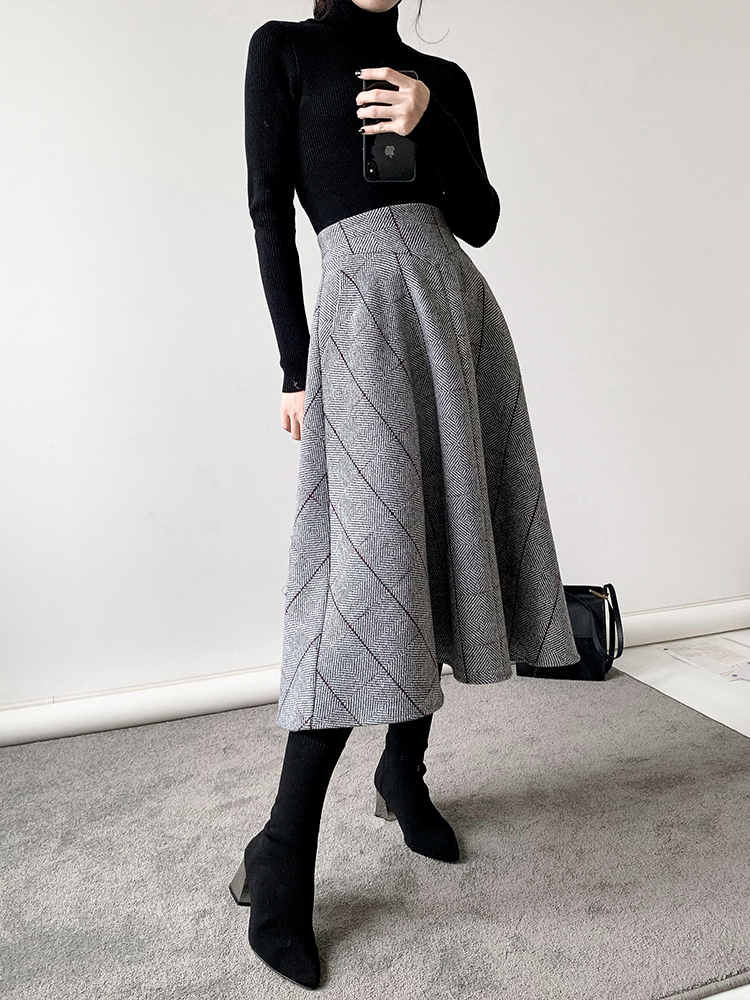 グレーベースのチェック柄で、どんなトップスとも相性バツグン◎