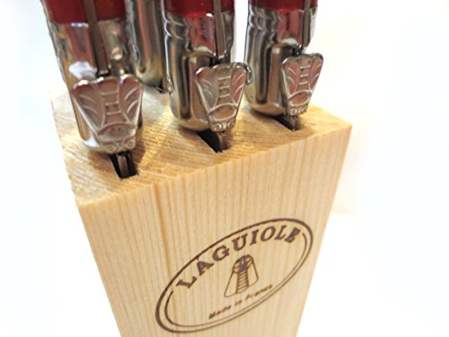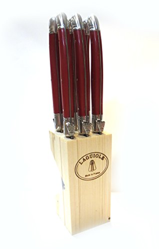 Jean Dubost Laguiole스테인레스강 스테이크 부엌칼 나이프 세트 레드with핸들을 자연스럽게 목제 부엌칼 나이프 블럭