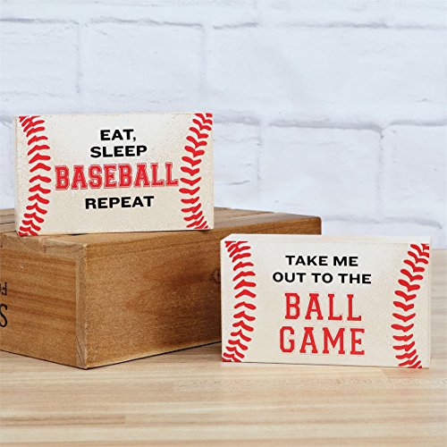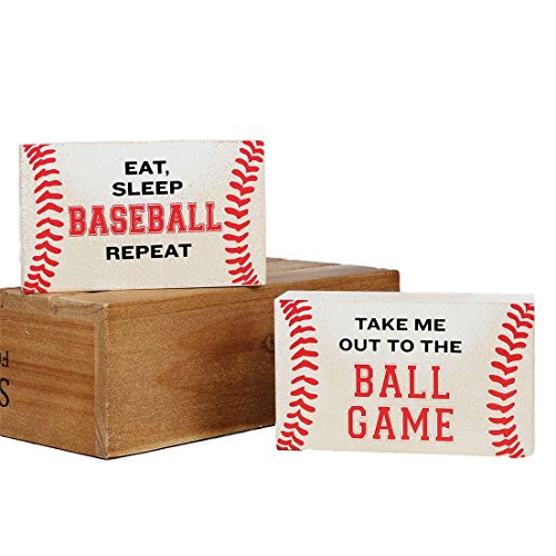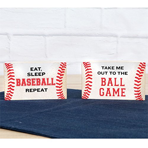 Baseball Themed Box Signs Take Me Out to the Ball Game and Eat Sleep Baseball Repeat - Set of 2