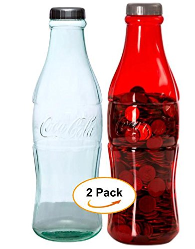 Studio : Coca-Cola Publisher : Coca-Cola Binding : Toy Product Description Our Best Selling Bottle Banks are now offer as a 2 piece set to save you time and money on shipping. This officially licensed Coca-Cola contour bottle bank is a great gift for Coke fans of all ages. Made of transparent plastic with a light green tint, it measures 12 inches tall, and 3 1/2 inches in diameter. It has a bottle cap shaped lid that screws on securely to keep your coins safely inside. This coin bank is a wonderful addition to children`s rooms to help teach them about saving money. Great for Coke collectors as it will fit well on a desk or shelf or on top of a dresser. Why settle for a Piggy Bank when you can have a Coca Cola Collectors coin bank. Coins NOT included. This bank makes a great presents for kids birthday parties. It teaches them about saving money any you can even add a few dollars or coins as a starter. No batteries need... unlike the popular coin stealing cat bank and no need to buy gumballs... 0