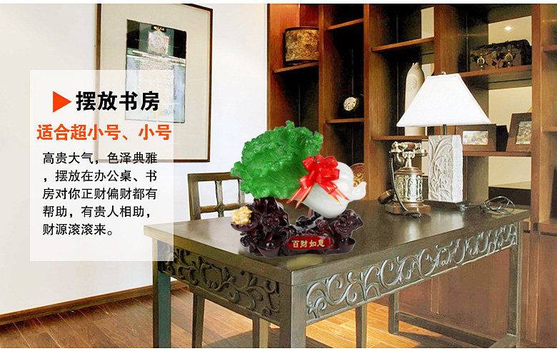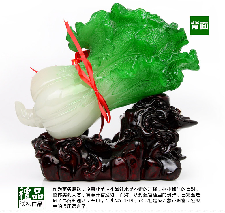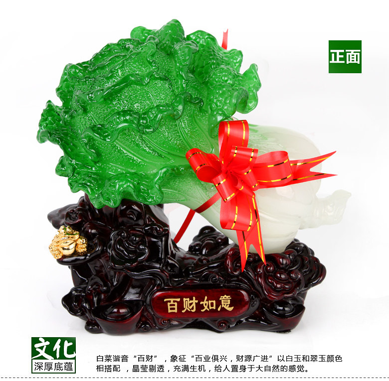 Cabbage homonym, meaning "one hundred money", there is enrichment, Lucky, fortune, one hundred gather to fiscal implications; second meaning, drawn from cabbage color and shape, meaning innocence. People in many areas of China over the Chinese New Year, when everyone has to eat two dishes that leaves cabbage and greens, meaning forever, clear vain. Similarly, experts believe that the cabbage has "faithful pure, unblemished meaning. Moreover, according to the pronunciation of cabbage, cabbage jade collection and" put money "meaning, such as cabbage jade and gold combination that is the intention.