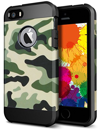 iPhone 5S Case, ELOVEN Ultra Slim Exact Fit Hybrid Dual Layer Shockproof Colorful Picture Design Soft TPU & Hard PC Bumper Protective Armor Case Cover for Apple iPhone 5S/5 - Leopard