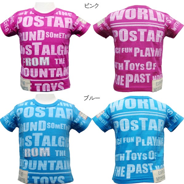 コメント:流行のネオンカラーに大きなロゴプリント♪夏に涼しいシャドーボーダー生地です。※90~95cmは左肩スナップボタン付きです。
