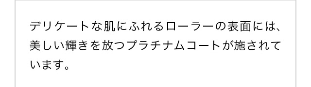【プラチナムコート】 デリケートな素肌に触れるものだからローラーの表面にはプラチナムコートを採用。 美しい輝きが長く続きます。