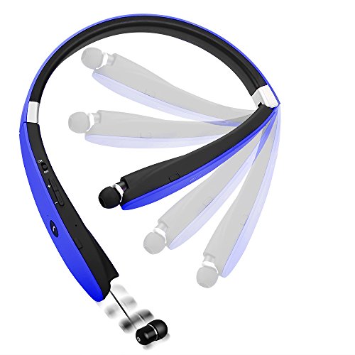 Title : [Newest Design] Wireless Bluetooth 4.1 Headset, Retractable and Foldable Neckband Style Headphones. (Blue)